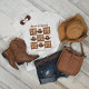Esta camiseta de baile de la línea "Born to Dance" da vida al encanto del país. Con un diseño de audaz estilo bloque combinado con una elegante caligrafía de escritura, el diseño está acentuado por gorras de vaquero y toros únicos de croquette llenos de un patrón de vaca. Los tonos marrón y beige aportan un toque rústico, ideal para los amantes del baile de línea. Cómoda y elegante, esta camisa es ideal para noches de baile, salidas informales o para todo aquel que ame un toque occidental.