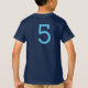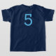 La camiseta del personalizado "Birthday Boy" presenta un diseño de texto moderno en tonos azules, verdes y blancos. Personalice el texto con el nombre y el número de edad de su hijo en la parte posterior. Todos los colores se pueden personalizar.