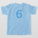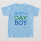 La camiseta del personalizado "Birthday Boy" presenta un diseño de texto moderno en tonos azules, verdes y blancos. Personalice el texto con el número de edad de su hijo en la parte posterior. Todos los colores se pueden personalizar.