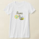 El color es muy bonito al natural, como la foto. El tejido es suave y de buena calidad. Sin defectos en el tintado, ni hilos sueltos o descosidos. Bien la impresión. Los bordes de las letras y el dibujo son nítidos, y el color contrasta muy bien con el de la camiseta.