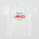 Nana me ama camisetas, trajes-bodysuit, vestidos sin mangas, camisetas escarpadas, trajes-espuma, gorras, trajes-bodysuit orgánicos, trajes-carpa, trajes-tutu, camisetas-raglan, camisetas-oscuras, sudaderas, cascos-pullover, y más para bebés, niños y niños pequeños con texto y diseño cardíaco de rojo, azul y oro que dice ¡Nana Me Ama!