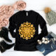 Camiseta de manga larga para mujeres floridas naranja dot mandala.