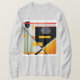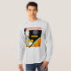 Animado y luminoso. Un gráfico vibrante y abstracto, inspirado en el estilo retro de diseño moderno de mediados de siglo, se crea mediante la combinación de formas audaces y geométricas en verde naranja, negro, gris y gris claro. Fotografiado aquí en una camiseta de manga larga "ash", que altera ligeramente los colores, y también aumenta su intensidad. Disponible en otros colores y estilos de camisa. Un estilo artístico y contemporáneo para su ropa diaria, informal (ya sea para trabajo/escuela, deportes/recreación, relajación/socialización o simplemente para hacer recados). Esta camiseta de "arte de llevar" puede alegrar la monotonía de vestir para nuestro mundo más informal, y contribuye a una sensación de estilo personalizado.