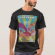 El color es muy bonito al natural, como la foto. El tejido es suave y de buena calidad. Sin defectos en el tintado, ni hilos sueltos o descosidos. Bien la impresión. Los bordes de las letras y el dibujo son nítidos, y el color contrasta muy bien con el de la camiseta.