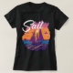 Vela - barcos lances en el lado del mar vacaciones familiares naranja camiseta con puesta de sol