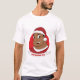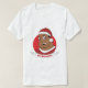 Camiseta femenina con el ilustracion de un joven afroamericano sonriente y feliz con un traje y gorra de Santa Claus rojo y blanco; Navidades diseño de vacaciones con personalizable plantilla de texto para tu nombre o mensaje