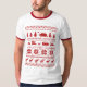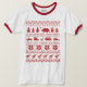 Navidades feos de California Sweater Tee. Este patrón de Navidades rojos y blancos muestra el oso del estado de California, reno, pinos, un perro montando una tabla de patinaje y autos con un árbol de Navidad y una tabla de surf. Texto: "Un Navidad de California, amor, alegría, paz, sol". Una camisa de vacaciones soleada en California que es perfecta para tu próximo fiesta de Navidades.