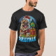 Ilustracion gráfico de un pug de Navidades con regalos en el bosque nocturno.
