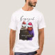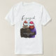Camisetas navidades comprometidos y personalizados. Esta acuarela presenta un ilustracion de moda de una pareja que lleva sombreros de santa. "Engaged" (Involucrado) está escrito a mano en escritura moderna y la plantilla está lista para que añada sus nombres y el año u otro texto personalizado.