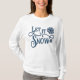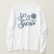 Navidades Dejan Que Nieva A Las Damas De Larga Manga Camiseta Blanca. El invierno deja que nieve se diseñe con un par de copos de nieve azules en una camiseta blanca de manga larga.