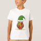 Ilustracion de un tímido búho de elfo feliz con sombrero de santa verde y regalo rojo con cinta amarilla. Este lindo diseño personalizado es un regalo para los amantes de las lechuzas, los amantes de las aves y los amantes de la fantasía o de las películas mágicas. ¿Estás emocionado de recibir tu regalo a los Navidades?