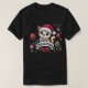Diseño de camisetas de Navidades festivos con un gato lindo vestido con un sombrero de Santa, rodeado de adornos de vacaciones, copos de nieve y luces, con el texto juguetón 'Navidades Meowy.