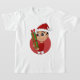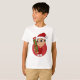 con el ilustracion de un lindo sonriente y feliz niño pequeño, lleva el traje rojo y blanco de Santa Claus y sostiene un regalo; diseño de vacaciones para Navidades