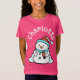 Este tee de navidades de niños rosados calientes presenta a un lindo muñeco de nieve en la parte delantera, con el nombre de su hijo en letra blanca giratoria. Para cambiar el nombre o el muñeco de nieve, haga clic en el botón de personalización. Este diseño contiene A.I.