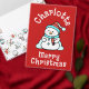 Este tee de navidades de niños blancos presenta a un lindo muñeco de nieve en la parte delantera, con el nombre de su hijo en letra roja giratoria. Para cambiar el nombre o el muñeco de nieve, haga clic en el botón de personalización. Este diseño contiene A.I.