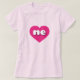 Esta camiseta presenta un vibrante corazón rosado caliente que contiene las letras negrita, blanca, redondeadas de funda inferior ne, una abreviatura juguetona para Nebraska, el estado de la cascarilla.