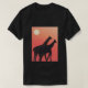 Esta camiseta negra de hombres está diseñada con mi representación de dos jirafas siluteadas por una puesta de sol naranja.