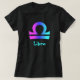 Símbolo del libra en púrpura y azul en la camiseta negra de las señoras clásicas. Estilos para hombre y de los niños también disponibles. Bendiciones felices del punto com bien que desea feliz.