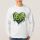 Siente el pulso con nuestro tee de "Neon Heartbeat". Este diseño presenta la palabra "CORAZÓN" audazmente pintado en graffiti con verde limón vibrante y negro crudo, ambientado en un sólido fondo de corazón verde. Es una pieza electrizante y llamativa que irradia energía y pasión. Usa tu corazón en tu manga, amplificado con estilo urbano.