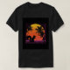 A playful squirrel silhouette relaxes under glowing palm trees against a bold neon sunset and retro grid, perfect for lovers of synthwave and tropical vibes.