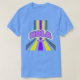 El color es muy bonito al natural, como la foto. El tejido es suave y de buena calidad. Sin defectos en el tintado, ni hilos sueltos o descosidos. Bien la impresión. Los bordes de las letras y el dibujo son nítidos, y el color contrasta muy bien con el de la camiseta.