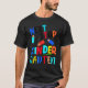El color es muy bonito al natural, como la foto. El tejido es suave y de buena calidad. Sin defectos en el tintado, ni hilos sueltos o descosidos. Bien la impresión. Los bordes de las letras y el dibujo son nítidos, y el color contrasta muy bien con el de la camiseta.