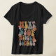 Camiseta con cuello en V de mujer, Negro, XL de adulto