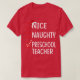 NICE NAUGHTY profesora de preescolar .Funny, Family, Sports, Music, Education, Animals, Jobs, Names, Graphic, Tees Shirt, Funny Sayings, Vintage, Holidays, Gifts, fiesta, souvenir, orgullo, vacaciones, prendas de vestir regalo para el Día del Padre, Navidades, cumpleaños, Día de la Madre, aniversario, graduación, Halloween 4 de julio, Jubilación, Día de San Patricio, Acción de Gracias.
