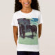Camiseta con la pintura al óleo de Frederic Remington, The Belated Traveler (1906). Un vaquero golpea la puerta de una cabaña en medio de una nieve de invierno. Él sujeta las riendas a un caballo marrón a su lado. Un regalo perfecto para los amantes del caballo y el viejo oeste.
