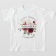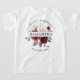 Las románticas rosas rojas borgoñosas y rosas rosas rubias crean un hermoso arreglo floral en esta camiseta chica de flores. El nombre del chica florido está escrito al otro lado del ramo de flores, en una franja blanca. El nombre y el boda de la novia están escritos encima del ramo en un texto curvo. Flower Girl está escrita debajo, también en un texto curvo.