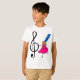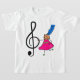Ilustracion caprichoso del dibujo animado lindo de una pequeña figura feliz chica del palillo que lleva a cabo un símbolo musical gigante del clef agudo. Modifique y elija su propio color de fondo para requisitos particulares o añada fácilmente el texto. Imagen disponible en los diversos regalos y productos.