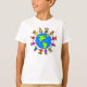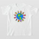 Niños felices lindos y diversos que llevan a cabo las manos alrededor de un globo que ofrece el mapa del norte y de Suramérica.