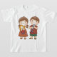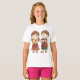 Dos niños, un niño y un chica sosteniendo algunos juguetes. Este diseño parece realmente efectivo en esta camiseta de Chicas