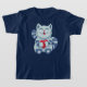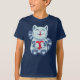 Camisas de niños amantes del gato con un lindo ilustracion digital que representa a un feliz gato azul enamorado. El pequeño felino sonríe y sostiene un gran corazón rojo.