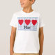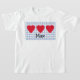 Esta adorable camisa tiene un fondo de manchas azules y blancas con un trío de corazones rojos. Personalice con el nombre de su hijo.