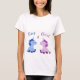 Una linda camiseta para una futura madre con dos pequeños unicornios. Un unicornio rosa y azul con un texto Chico y Chica. El diseño es perfecto para mellizos: un niño y un chica.