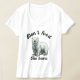 El color es muy bonito al natural, como la foto. El tejido es suave y de buena calidad. Sin defectos en el tintado, ni hilos sueltos o descosidos. Bien la impresión. Los bordes de las letras y el dibujo son nítidos, y el color contrasta muy bien con el de la camiseta.
