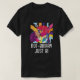 El color es muy bonito al natural, como la foto. El tejido es suave y de buena calidad. Sin defectos en el tintado, ni hilos sueltos o descosidos. Bien la impresión. Los bordes de las letras y el dibujo son nítidos, y el color contrasta muy bien con el de la camiseta.
