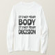 Diseño de texto con la frase "No es tu cuerpo, no es tu decisión". Defender la dignidad humana, la igualdad de género, los derechos de la mujer y la autodeterminación.
