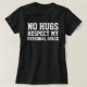 NINGÚN ABRAZO Respeta Mi Espacio Personal. También puede hacer clic en "Personalizar" para cambiar el tipo de letra, color y tamaño. Lema gracioso / Diciendo genial para reuniones, reuniones o incluso socializar todos los días! Texto blanco / fuente. Personalizable completo.