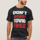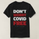 No te preocupes Covid Gratis el texto gracioso acerca de Covid-19 y Coronavirus reglas en colores rojo y blanco conjunto en un moderno tipo de letra para las camisetas negras de los hombres. Si elige un color diferente para este producto, puede editar el diseño y modificar fácilmente los colores en consecuencia. Este diseño incluye un nombre de personalizable en la parte inferior, impreso en un tipo de letra punteado en blanco. Por favor, reemplace el nombre predeterminado con el suyo o no dude en borrarlo.
