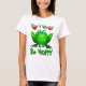 Rana dulce y feliz personalizado verde con ojos googly azules, corazones brillantes de amor rojo y un divertido mensaje de juego de palabras. Se muestra en blanco de las mujeres, muchas otras opciones de estilo y color para niños y adultos. Dé esta divertida declaración de moda a amigos, familia, niños, para cumpleaños, ocasión especial, refresco en el armario o en cualquier momento. Esta linda rana es mi anfibio de arte original, creado inicialmente como parte de un juego en línea. El juego se ha ido, y froggie sigue vivo, con ojos azules y sonrisa maravillosa.