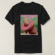 El color es muy bonito al natural, como la foto. El tejido es suave y de buena calidad. Sin defectos en el tintado, ni hilos sueltos o descosidos. Bien la impresión. Los bordes de las letras y el dibujo son nítidos, y el color contrasta muy bien con el de la camiseta.