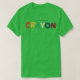 El color es muy bonito al natural, como la foto. El tejido es suave y de buena calidad. Sin defectos en el tintado, ni hilos sueltos o descosidos. Bien la impresión. Los bordes de las letras y el dibujo son nítidos, y el color contrasta muy bien con el de la camiseta.