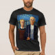 Eleva tu armario con esta mezcla imaginativa de la icónica "gótica estadounidense" de Grant Wood y la fascinante "noche estrellada sobre el Ródano" de Van Gogh. Sienta el encanto de la Américas rural reuniéndose con el impresionante impresionismo en detalle vívido. Perfecto para los amantes del arte que anhelan el estilo con una historia.