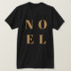Simple, elegante y audaz "Noel" cita arte significa camiseta navideña con elegante dorado sobre un fondo negro de lujo en un moderno estilo tipográfico minimalista. El saludo se puede personalizar fácilmente para un diseño único y personal de vacaciones que destaca entre la multitud.