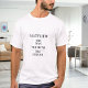 Para una camiseta blanca de color claro. Personaliza y añade un nombre. Texto: El hombre, el mito, la leyenda. Texto negro.