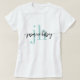 Tendencia hacia un estilo sencillo con atractivo de diseñador, este moderno diseño de camisetas muestra tu nombre escrito a mano en un guión caligráfico con colas principales y finales para añadir un aspecto elegante. Las iniciales y las últimas iniciales se presentan en una cara moderna de tipo "serif" industrial en agua clara verde azulada bajo la caligrafía. ¡El resultado es elegantemente tú! NOTA: al personalizar su nombre en este elemento, asegúrese de dejar los símbolos de la caja antes y después de su nombre. Esto es lo que hace que las preciosas colas se impriman antes y después de su nombre.