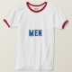 Hombres Texto o Nombre o Palabra con Color Azul Profundo Texto y El estilo es camiseta de anillo de dedo Básico, el tipo de color es blanco/rojo y el tipo Tamaño es L adulto.