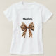 Para una camiseta ligera. Decorada con un arco con estampado de leopardo. Personaliza y agrega tu nombre. Texto negro.